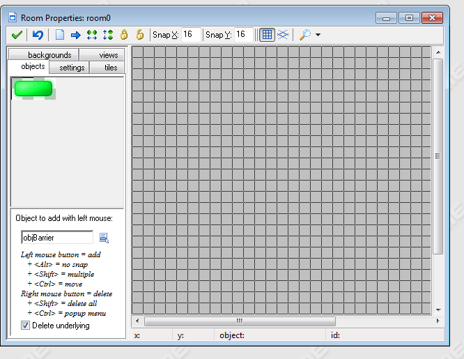 You can now add objects to the window by choosing the objects in the objects section and then left clicking in the room grid where you would like them to go. (Right click takes them away)