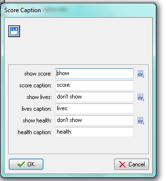 We will leave everything set as is for this and just choose ok. (Setting it to score 0 and relative not checked. – Thus starting our score at 0) Next we want to add the action to display the score on the screen. This is under Health in the icons.